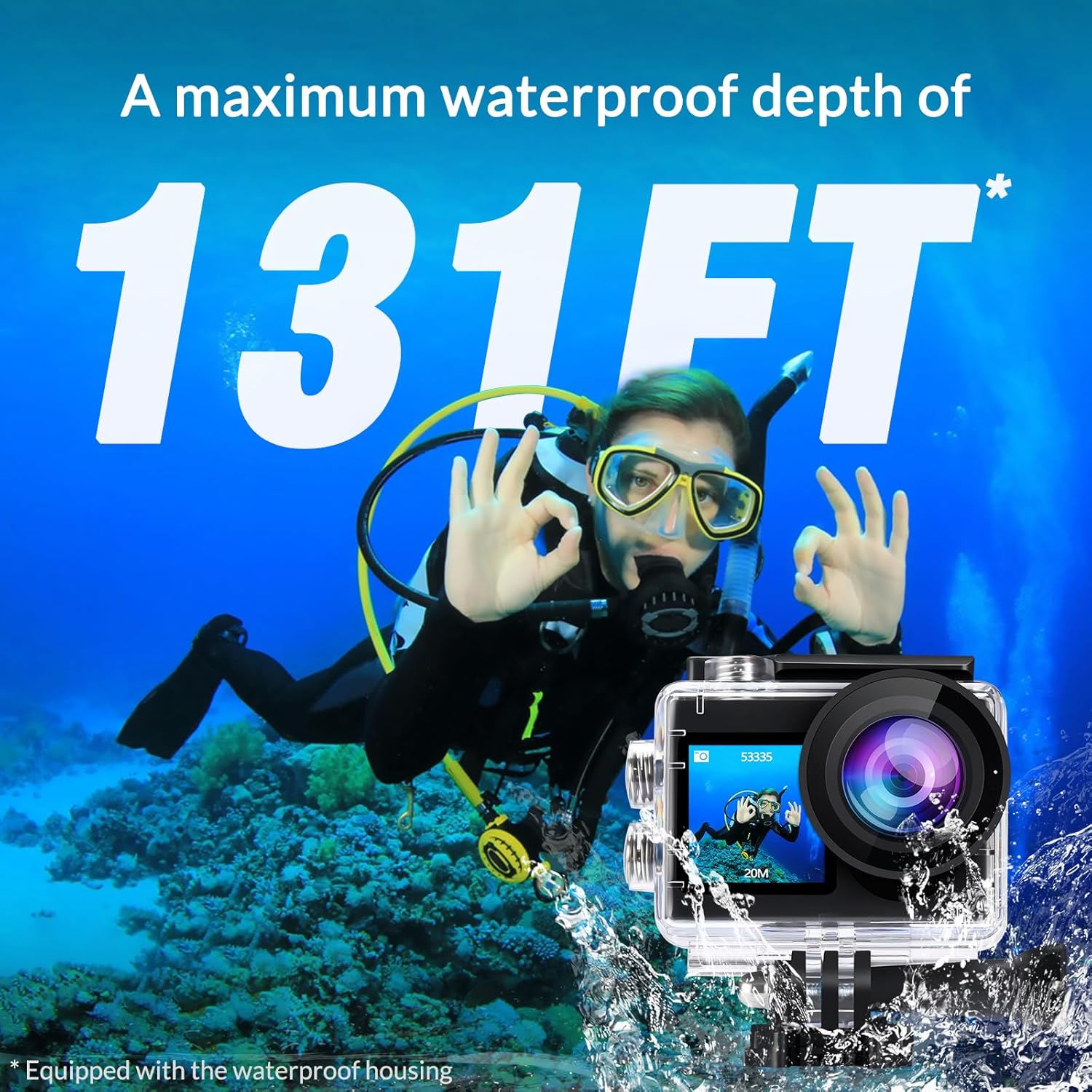 With a crystal-clear 4K resolution at 60 frames per second and a 20MP camera, the Icefox Action Camera ensures every moment is captured with exceptional clarity and sharpness. Take your underwater photography to new depths with a waterproof design that allows you to dive up to 131 feet without any worries.